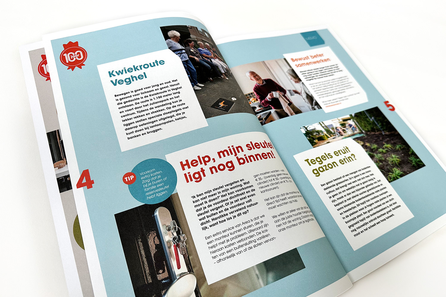 Ontwerp van het Areander jubileum magazine plus jubileum logo voor woningcorporatie Area.