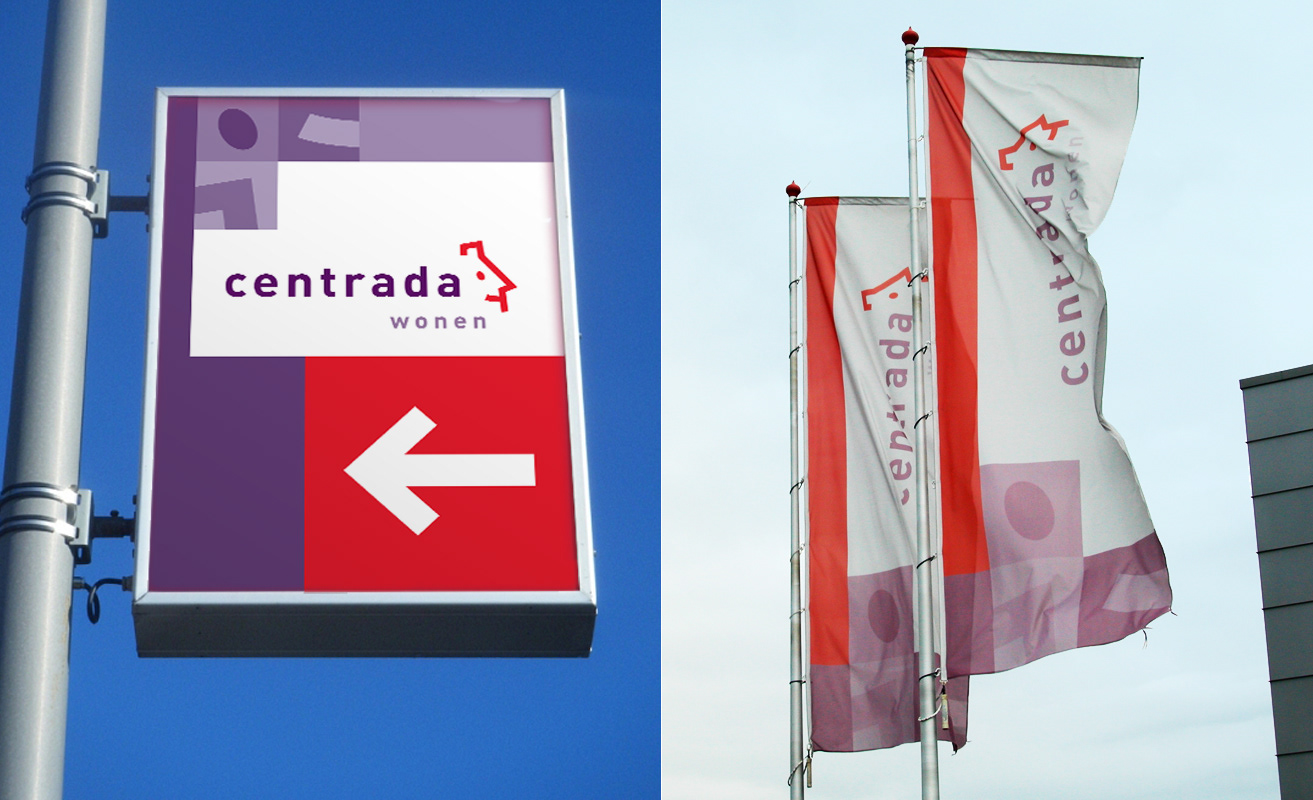Ontwerp van huisstijl voor woningcorporatie Centrada in Lelystad.