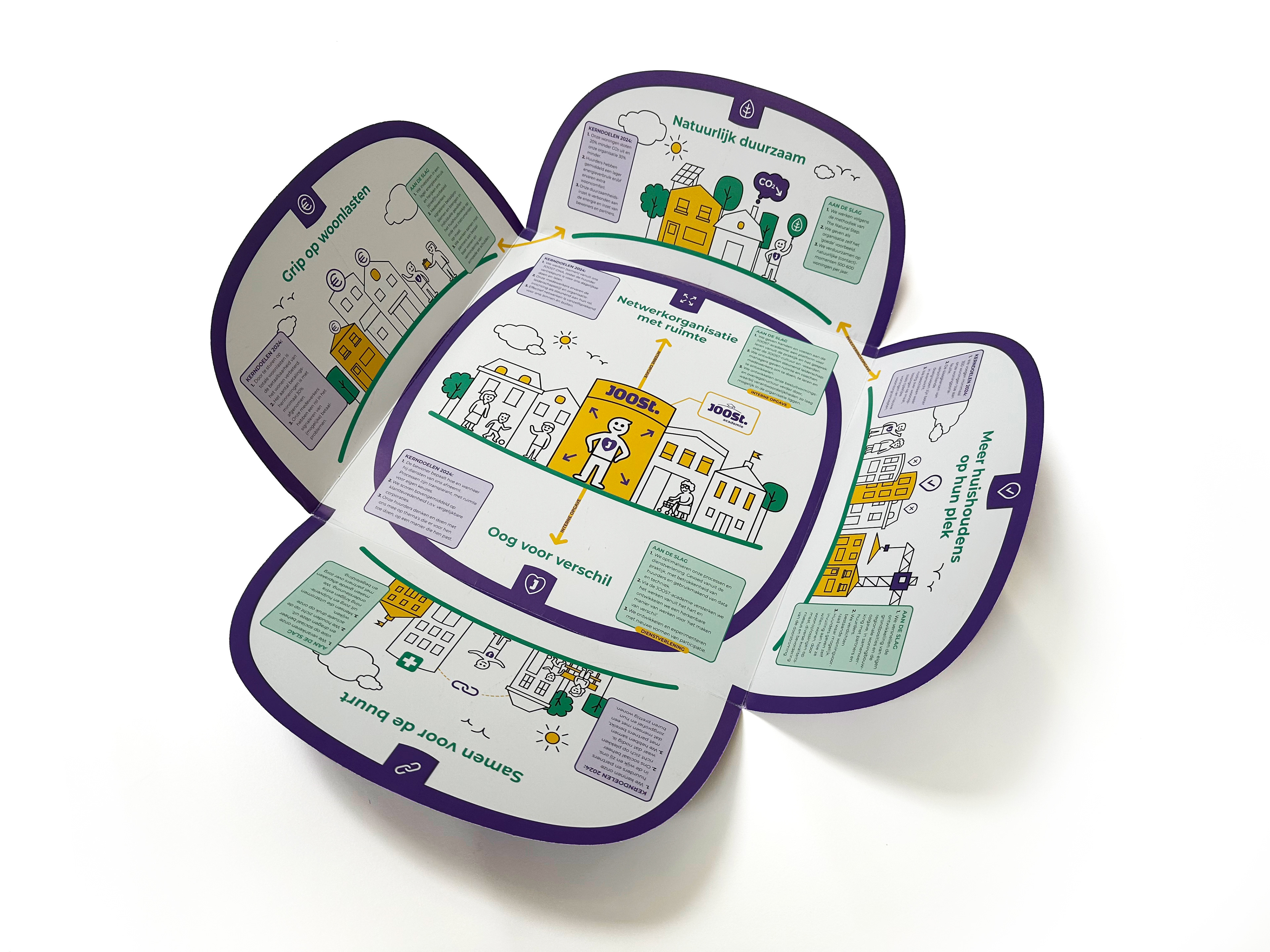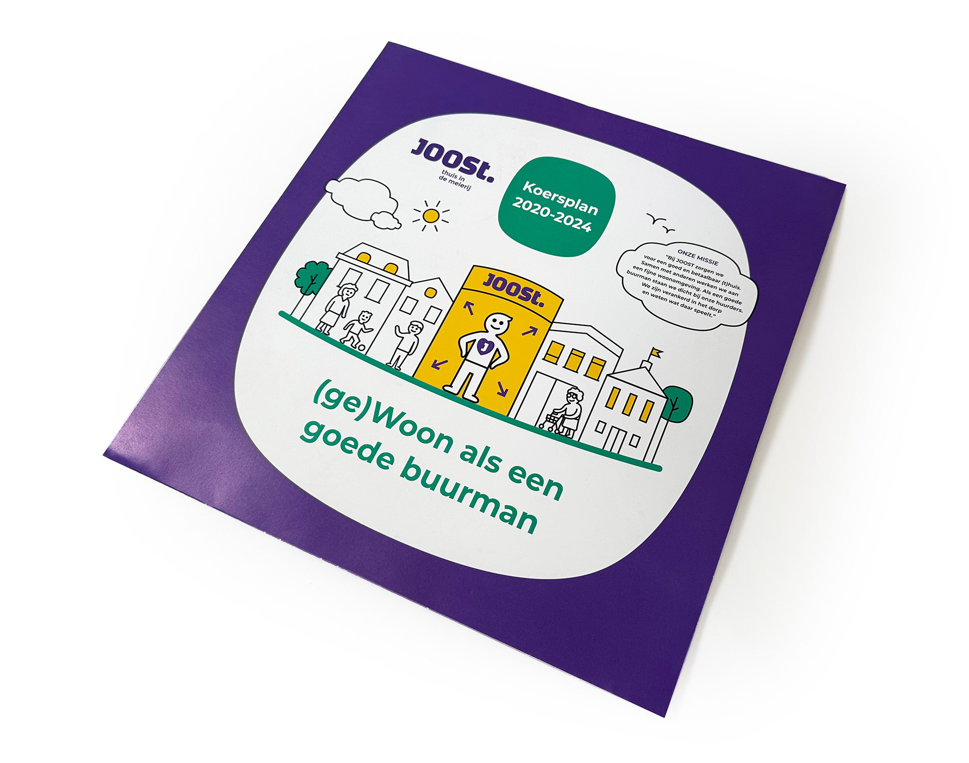 Ontwerp en illustratie van het Koersplan 2020-2024 voor woonstichting JOOST.