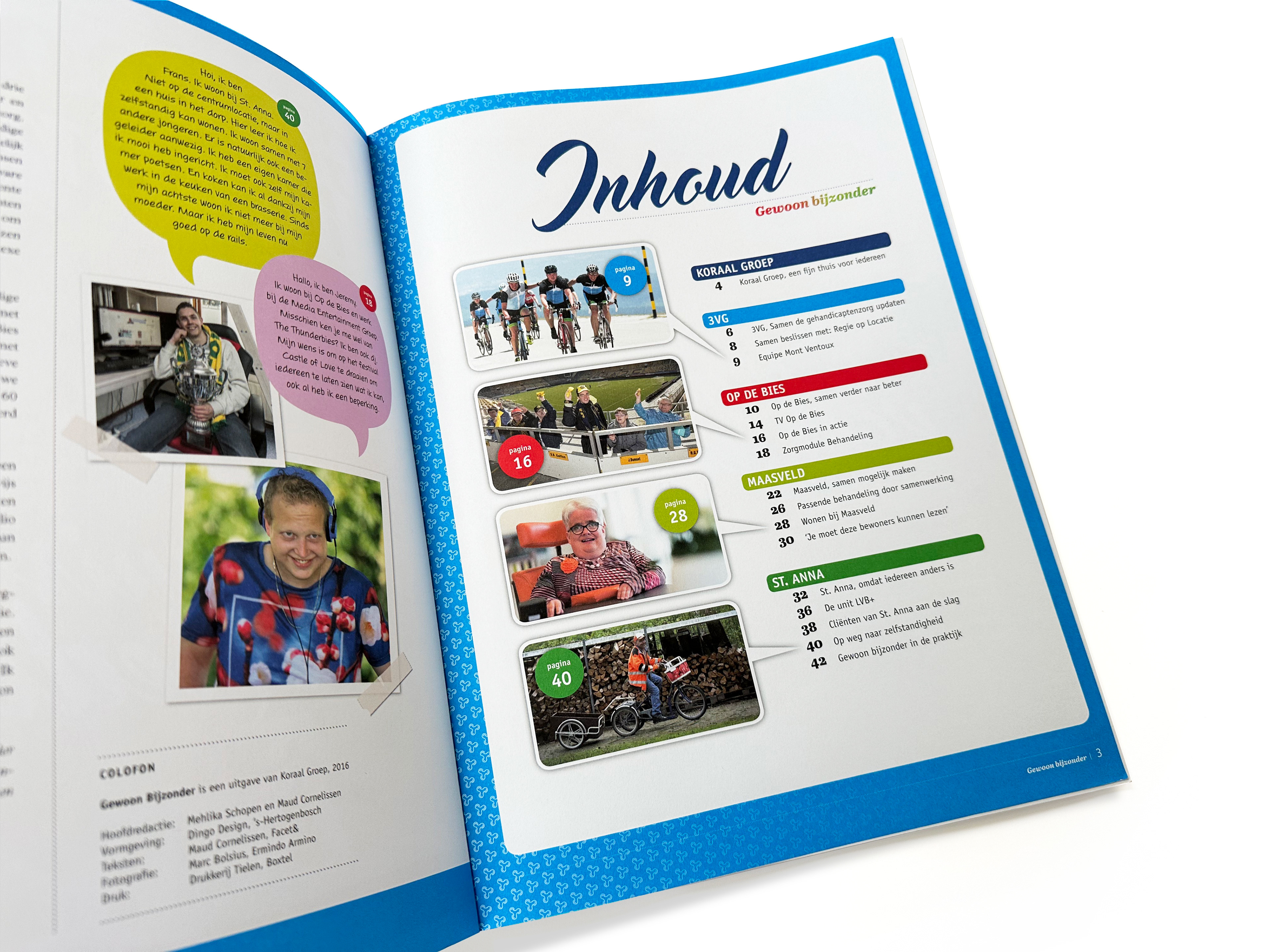 Ontwerp en illustreren van twee kleurrijke magazines voor stichting Koraal, specialist in Speciaal Onderwijs, Jeugd & Gehandicaptenzorg.