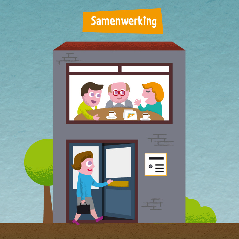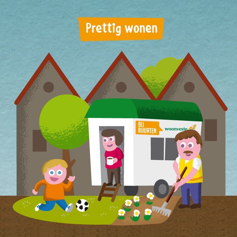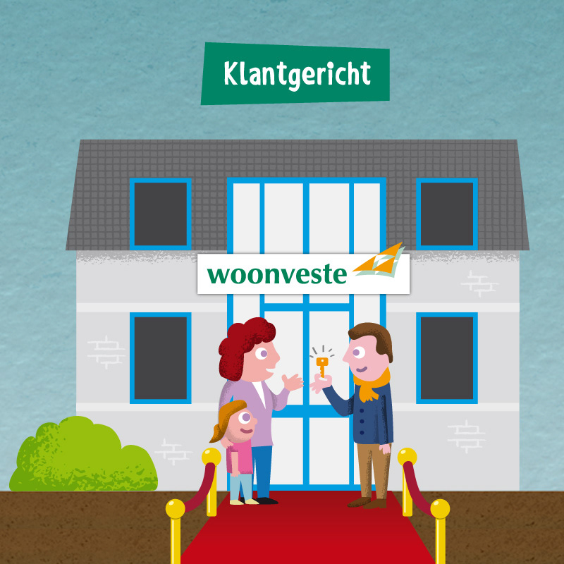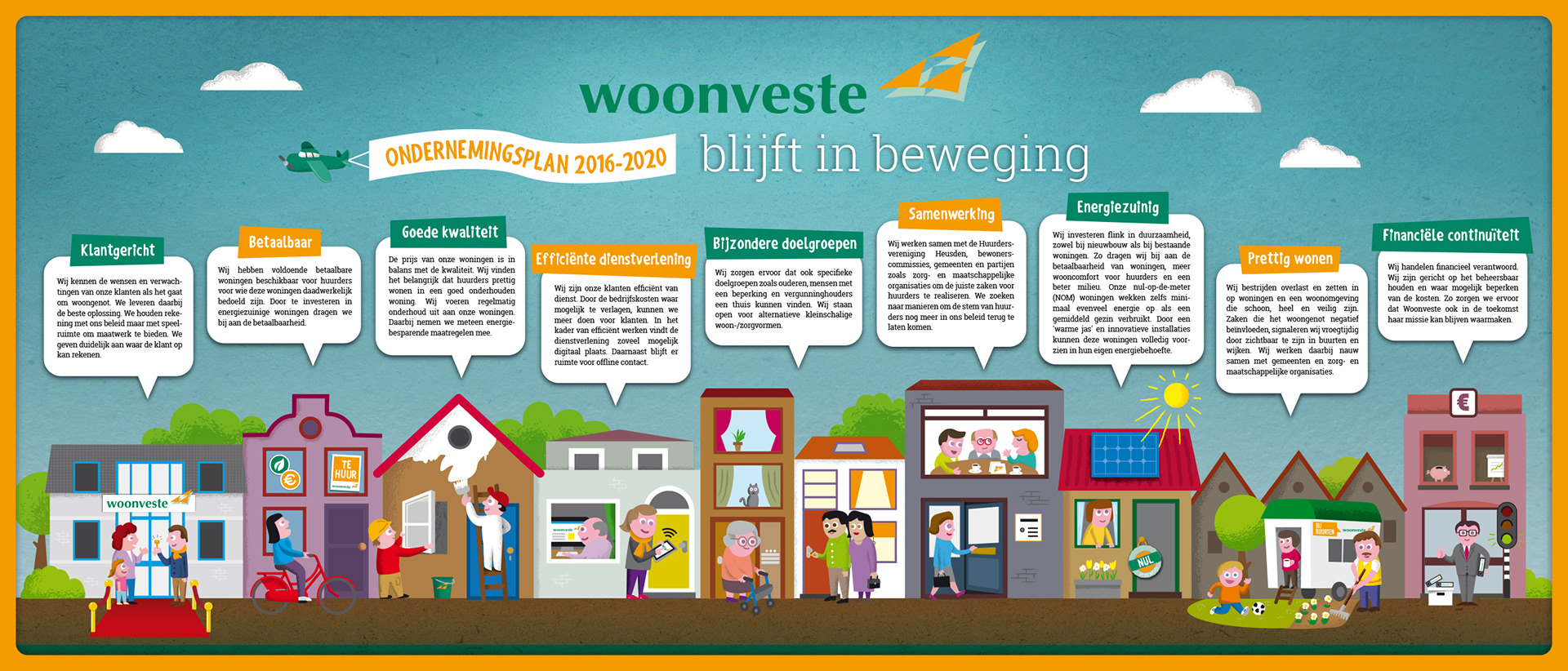 Ontwerp en illustratie van het ondernemingsplan voor woningcorporatie Woonveste in Drunen.